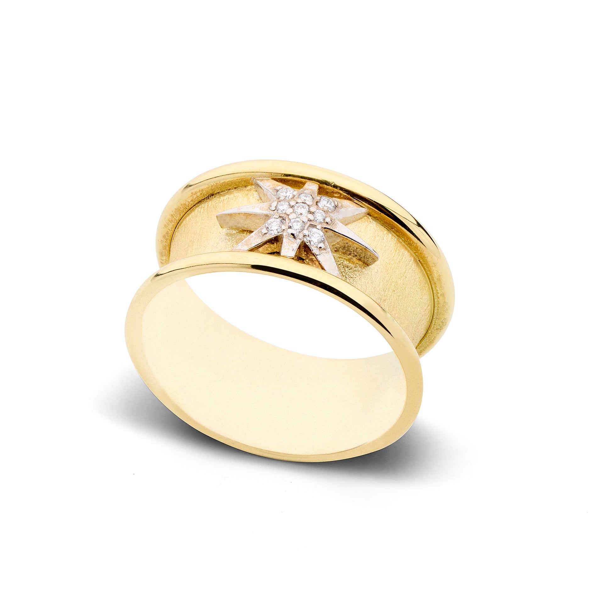 On his very first trip to Italy, Adam was captivated by the exquisite detailing in every structure, painting and sculpted work of art. The diamond starburst pattern found in this band and throughout his signature Constellation Collection was inspired by the celestial marvels decorating the ceiling of Italian churches.