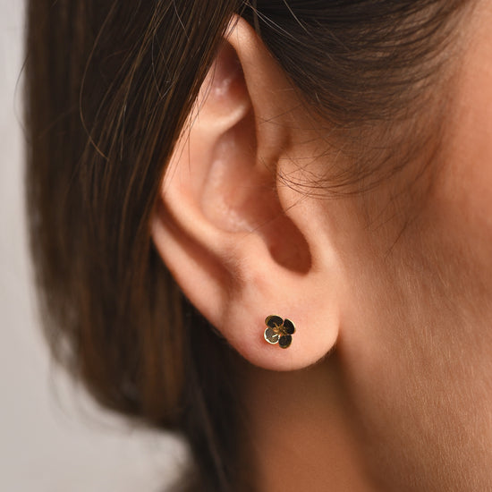 Hibiscus Earrings in 18k Yellow Gold--Small