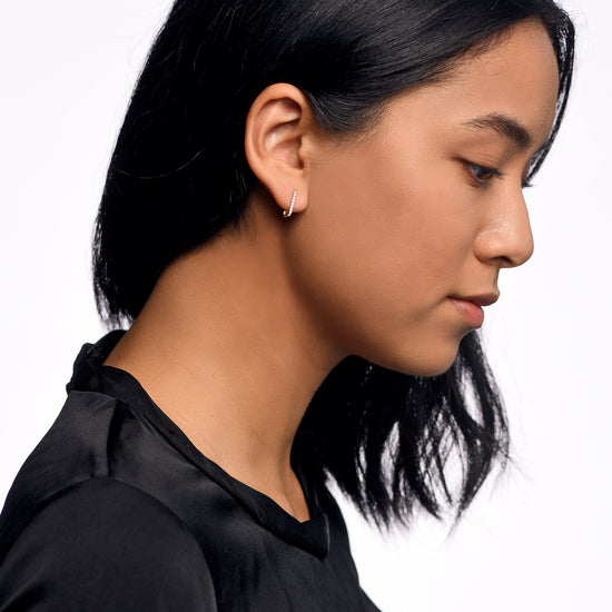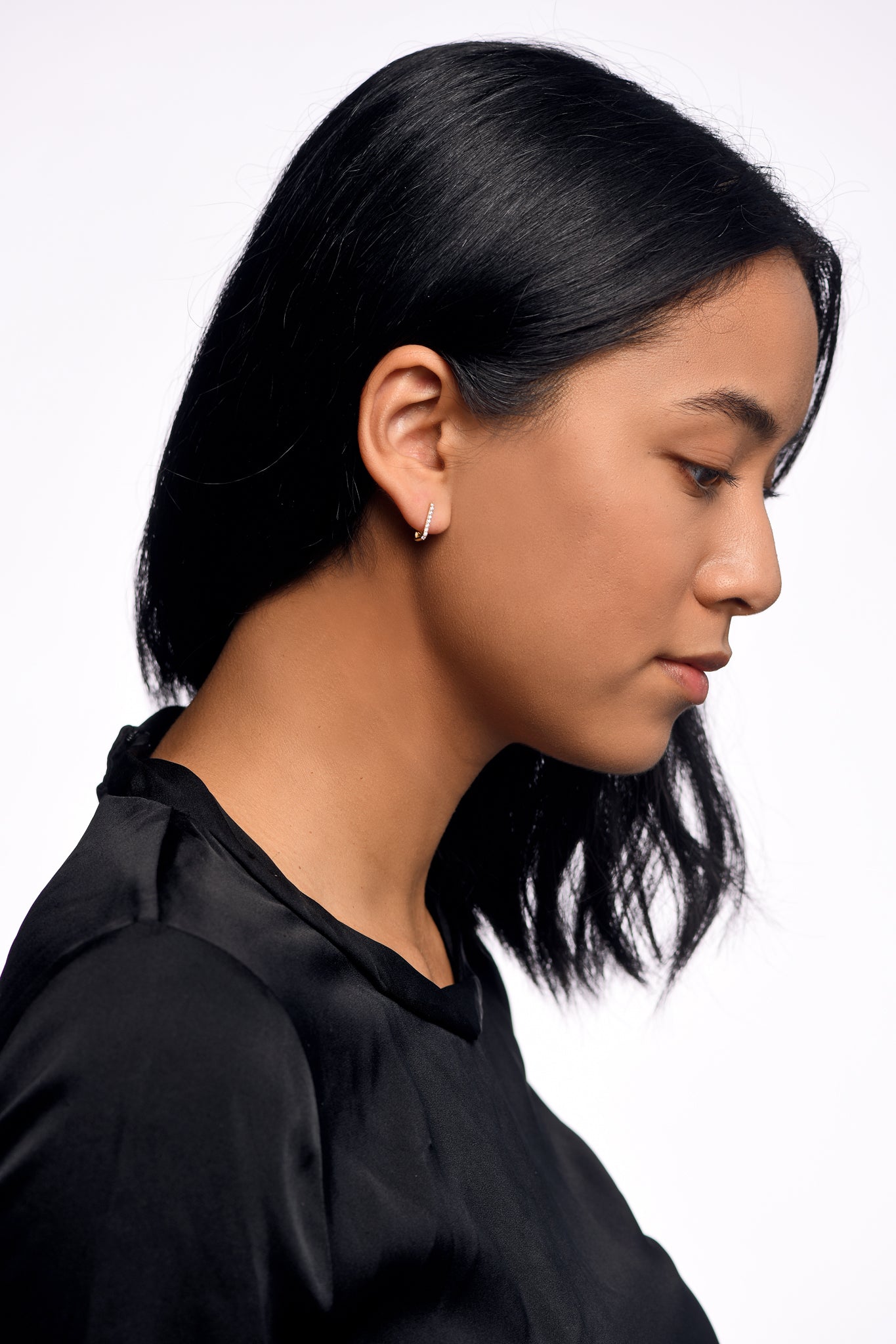 Adam Foster's fresh and modern take on a jewelry wardrobe staple: the Huggie hoop. Simple and clean yet impactful, these earrings are perfect for everyday wear.