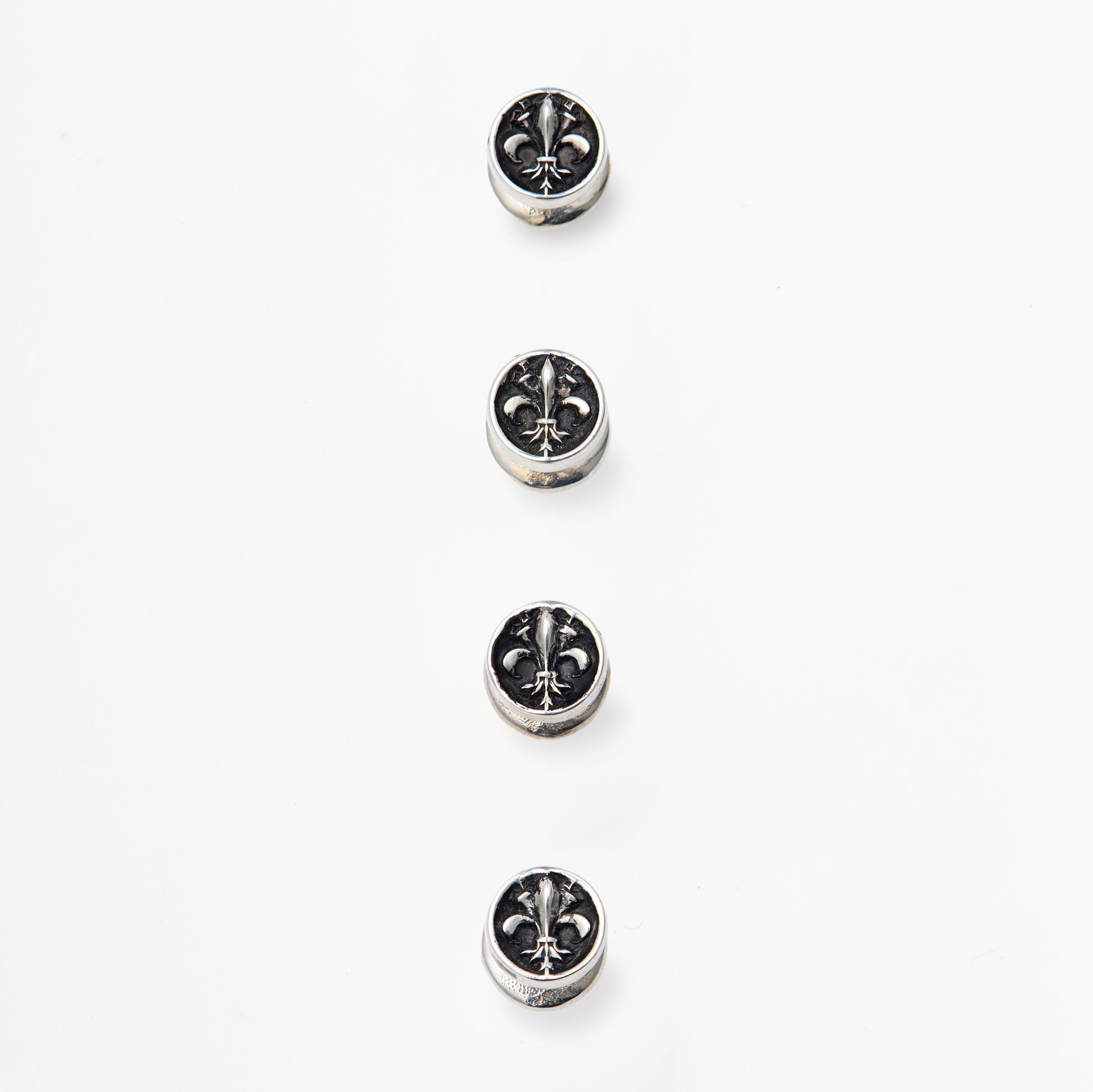 Custom sterling silver shirt studs featuring the Veiled Prophet emblem