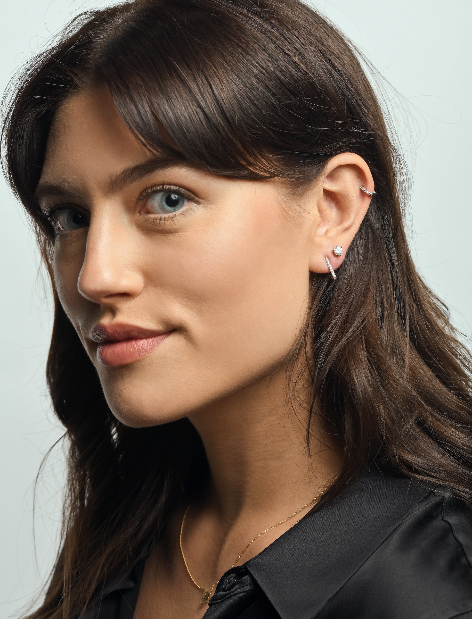 Adam Foster provides a fresh iteration of a jewelry wardrobe staple: the Huggie hoop. Simple and clean yet impactful, these earrings are perfect for everyday wear.