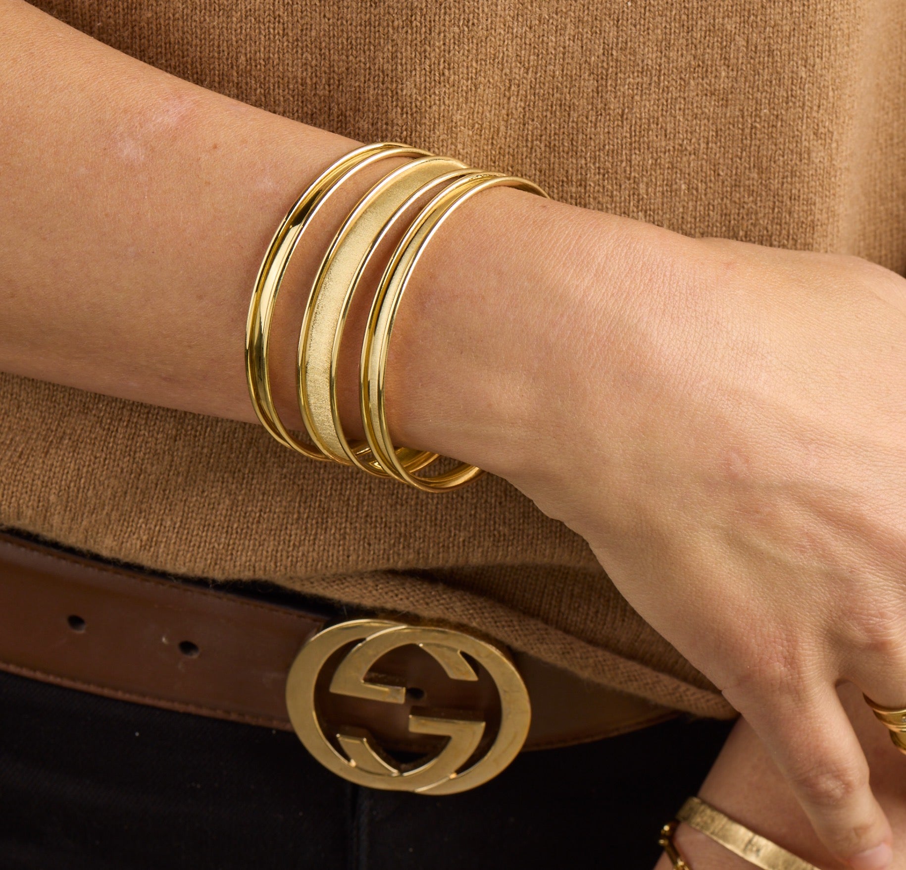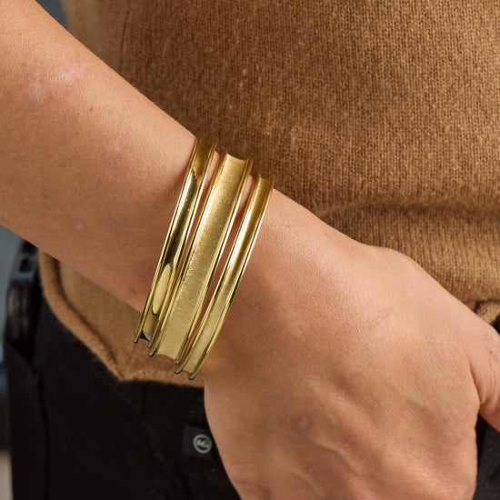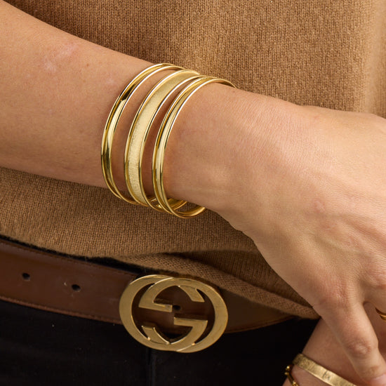 Wide Bangle Bracelet in 18k Yellow Gold with Florentine Finish